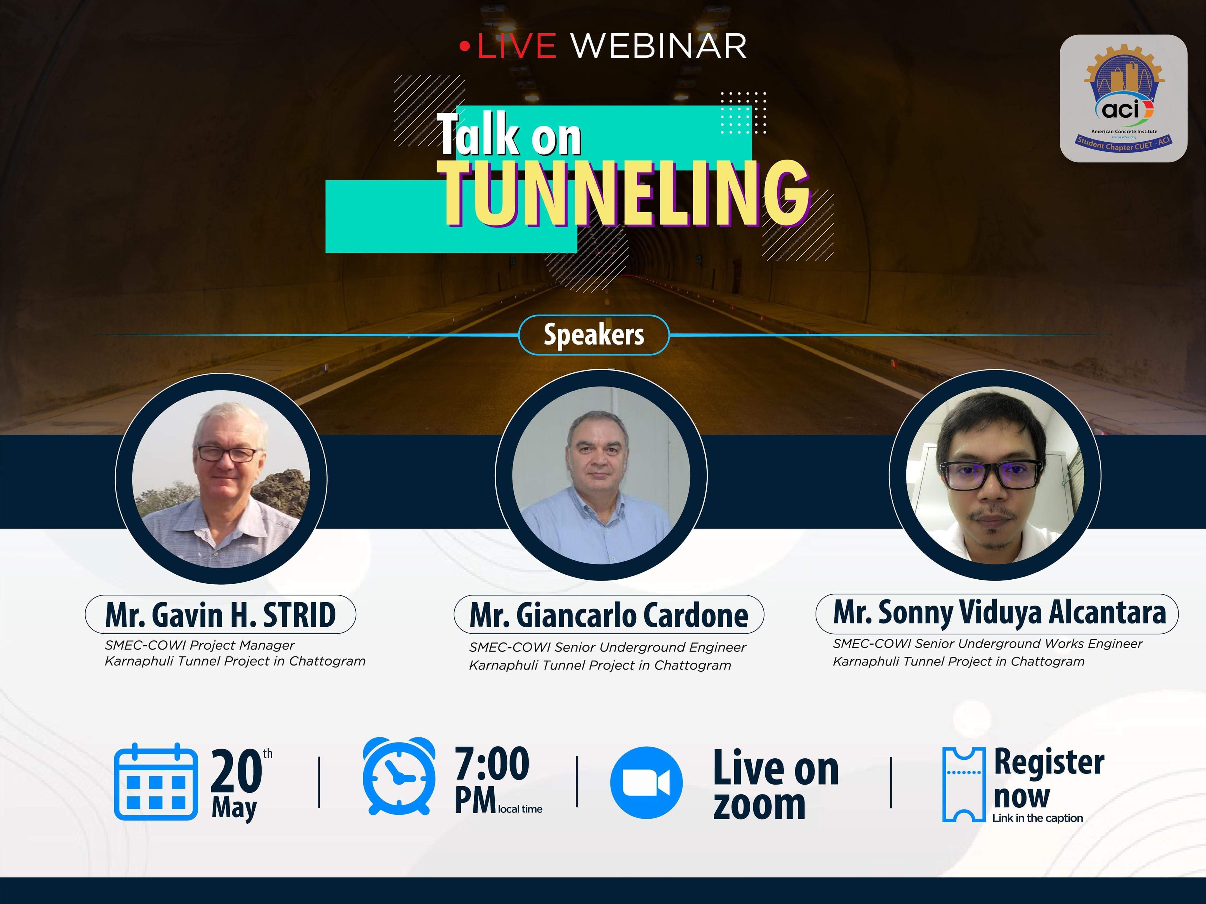 গত ২০ মে আমেরিকান কংক্রিট ইনস্টিটিউট (এসিআই), স্টুডেন্ট চ্যাপ্টার চুয়েট কর্তৃক ‘Talk on tunneling’ শিরোনামে আর্ন্তজাতিক সেমিনার অনুষ্ঠিত হয়। এই সেমিনারের প্রধান অতিথি হিসেবে ছিলেন চট্টগ্রাম প্রকৌশল ও প্রযুক্তি বিশ্ববিদ্যালয় এর মাননীয় উপাচার্য অধ্যাপক ড. মোহাম্মদ রফিকুল আলম এবং সভাপতিত্ব করেন চুয়েটের পুরকৌশল বিভাগের অধ্যাপক ও এসিআই অনুষদ উপদেষ্টা ড. জি এম সাদিকুল ইসলাম।