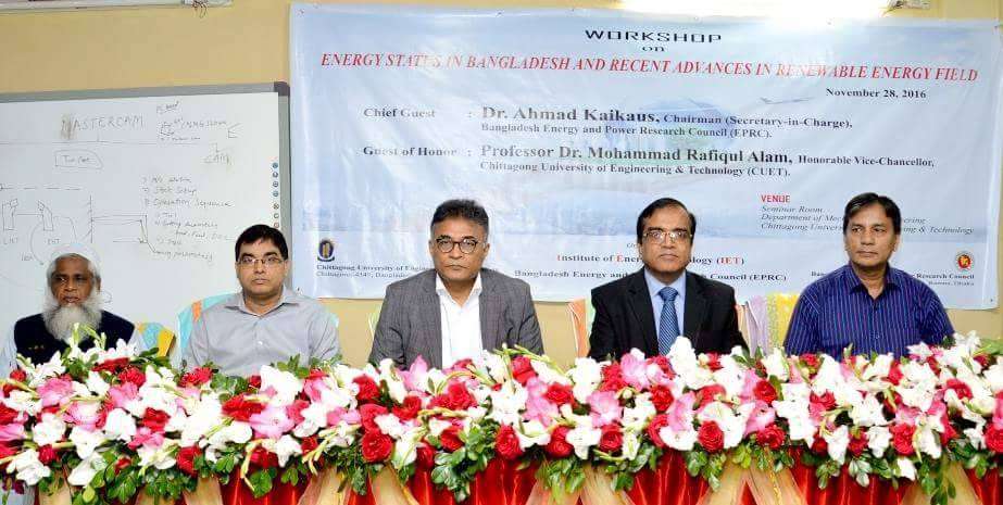 চট্টগ্রাম প্রকৌশল ও প্রযুক্তি বিশ্ববিদ্যালয়ে (চুয়েট) ২৮ নভেম্বর ‘Energy Status in Bangladesh and Recent Advances in Renewable Energy Field’ শীর্ষক দিনব্যাপী এক কর্মশালা অনুষ্ঠিত হয়েছে । বিশ্ববিদ্যালয়ের ইনস্টিটিউট অব এনার্জি টেকনোলজির (আইইটি) আয়োজনে চুয়েটের যন্ত্রকৌশল বিভাগের সেমিনার কক্ষে এই কর্মশালা অনুষ্ঠিত হয় ।