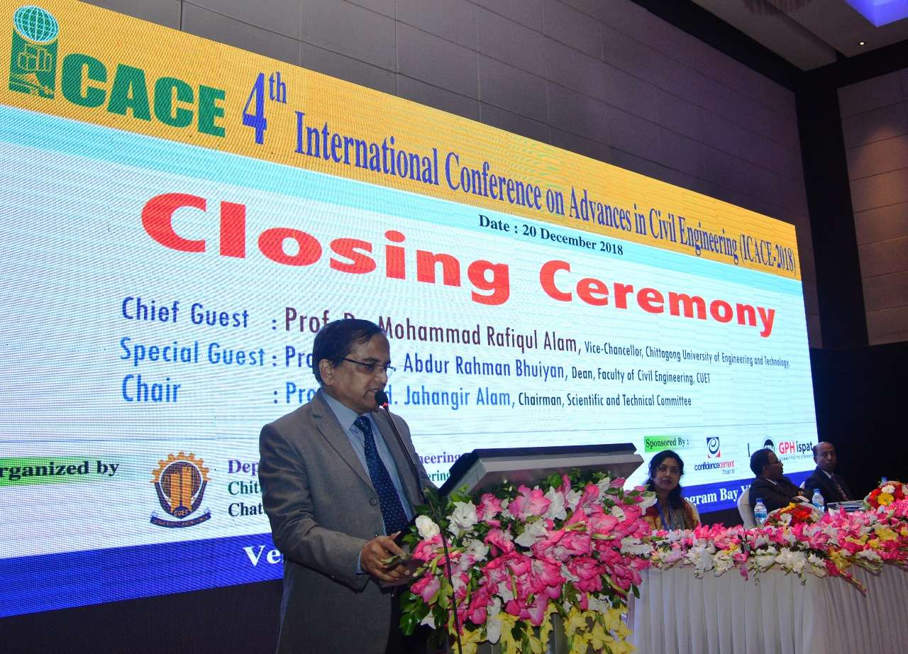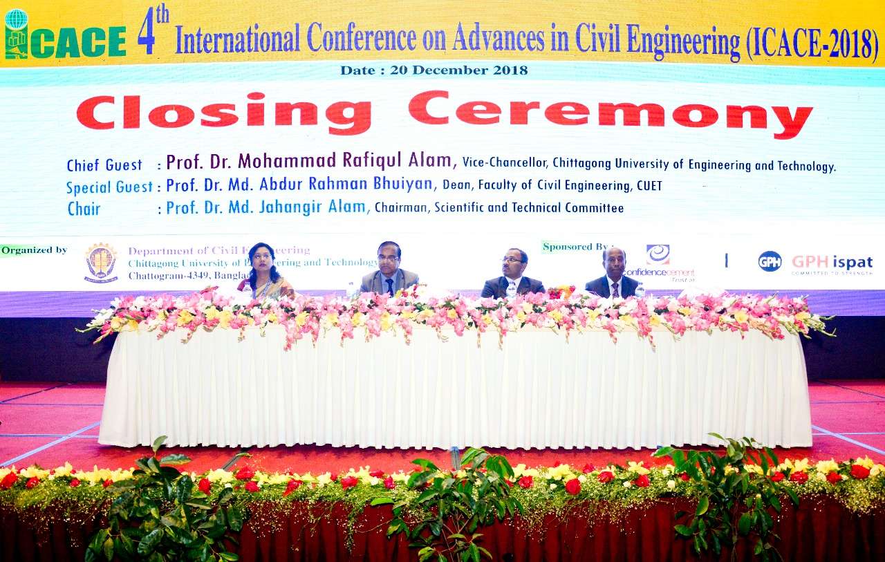 চট্টগ্রাম প্রকৌশল ও প্রযুক্তি বিশ্ববিদ্যালয়ের (চুয়েট) পুরকৌশল (সিভিল ইঞ্জিনিয়ারিং) বিভাগের আয়োজনে পুরকৌশল খাতের অগ্রগতি শীর্ষক তিনদিনব্যাপী ৪র্থ আন্তর্জাতিক কনফারেন্স ‘আইসিএসিই-২০১৮’ (4th International Conference on Advances in Civil Engineering; ICACE-2018)-এর সমাপনী অনুষ্ঠান সম্পন্ন হয়।