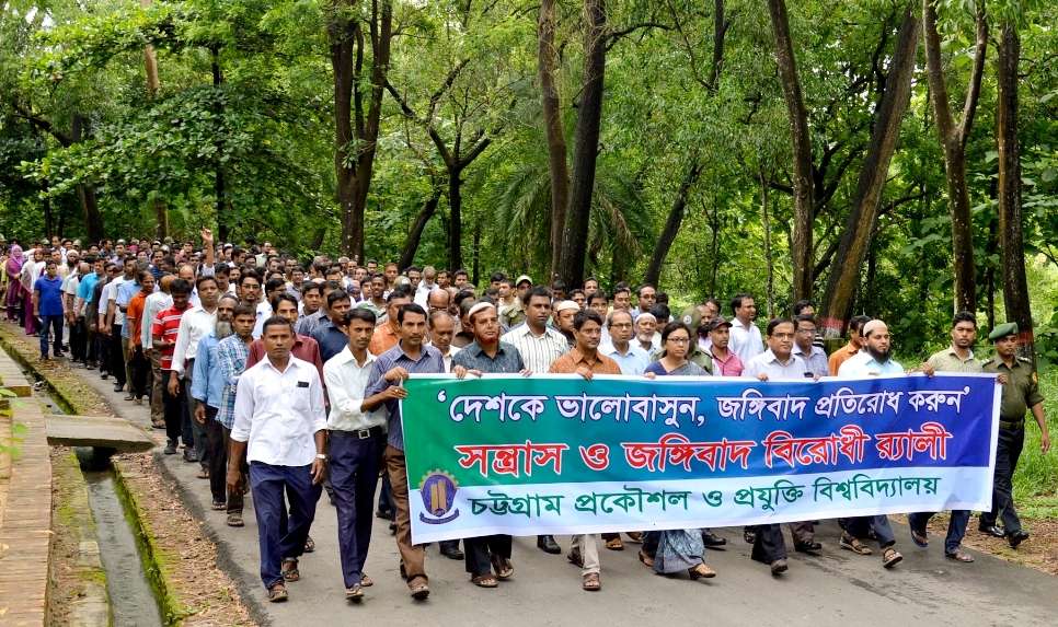 চটগ্রাম প্রকৌশল ও প্রযুক্তি বিশ্ববিদ্যালয়ে (চুয়েট) গত বুধবার বিশ্ববিদ্যালয় প্রশাসন এবং ছাত্র সংগঠনের আয়োজনে পৃথক পৃথকভাবে সন্ত্রাস ও জঙ্গীবাদ বিরোধী র্যালি, সমাবেশ ও মিছিল অনুষ্ঠিত হয়েছে ।