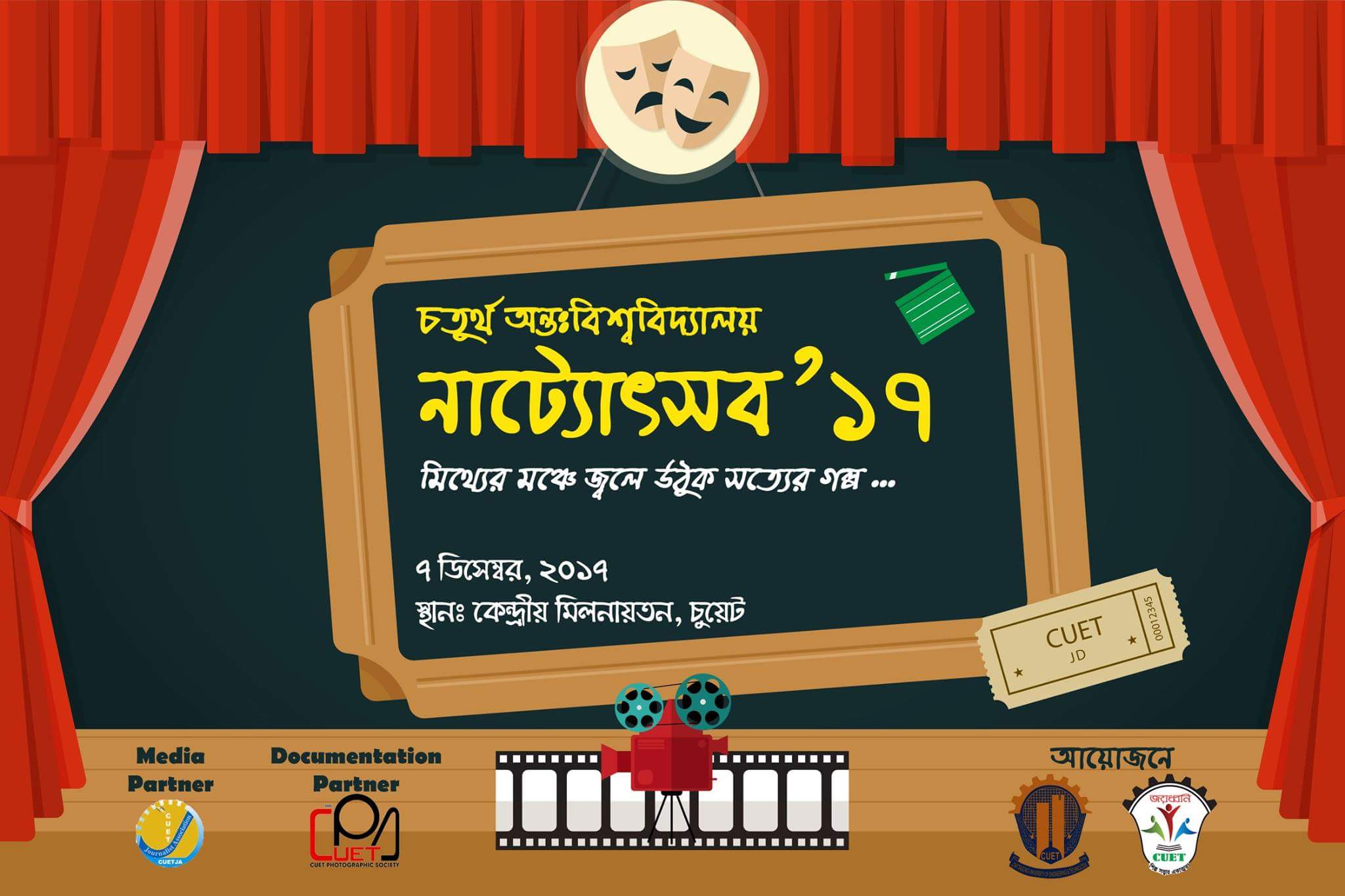 চট্টগ্রাম প্রকৌশল ও প্রযুক্তি বিশ্ববিদ্যালয়ের (চুয়েট) সাংস্কৃতিক সংগঠন জয়ধ্বনির আয়োজনে চতুর্থ অন্তঃবিশ্ববিদ্যালয় নাট্যোৎসব অনুষ্ঠিত হচ্ছে আজ। বৃহস্পতিবার বিকেল পাঁচটায় বিশ্ববিদ্যালয়ের কেন্দ্রীয় মিলনায়তনে অনুষ্ঠানটি আয়োজিত হবে।