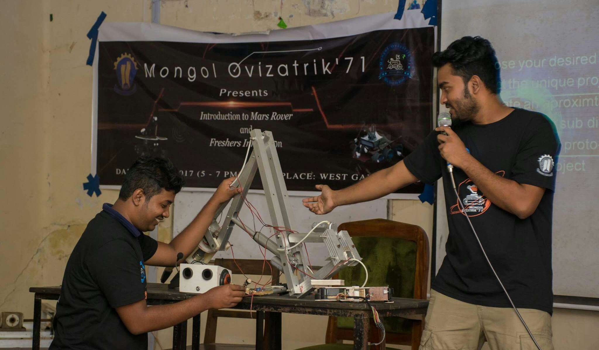অনুষ্ঠানে আয়োজকরা মঙ্গলে বিজ্ঞানের নিয়মগুলো কিভাবে কাজ করে তা শিক্ষার্থীদের সামনে তুলে ধরেন। এসময় দলটির তৈরিকৃত মঙ্গলে চলাচলে সক্ষম রোবট ‘মার্স রোভার’ , মানবসদৃশ রোবট এবং আধুনিক মাল্টি-কপ্টার প্রযুক্তি শিক্ষার্থীদের প্রদর্শন করা হয়। তাছাড়াও আয়োজকরা বিশ্বের বিভিন্ন বিশ্ববিদ্যালয়ে অনুষ্ঠিত মঙ্গল গ্রহে চলাচলে সক্ষম রোবট তৈরির প্রতিযোগিতা সম্পর্কেও শিক্ষার্থীদের ধারণা দেন।