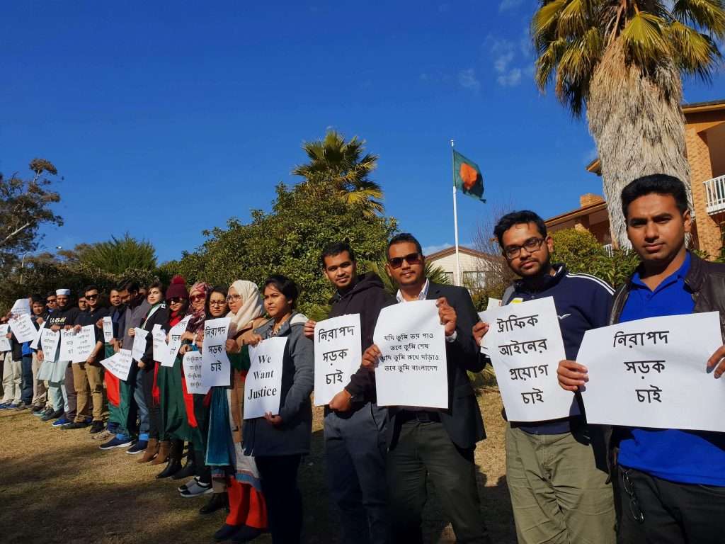 নিরাপদ সড়কের দাবিসহ বাংলাদেশের তরুণ শিক্ষার্থীদের চলমান আন্দোলনকে সমর্থন জানিয়ে গতকাল (৩ রা আগস্ট) মানববন্ধন করেছেন অস্ট্রেলিয়ার ইউনিভার্সিটি অফ নিউ সাউথ ওয়ালেসে অধ্যয়নরত গবেষকেরা । মানববন্ধনের পর গবেষকেরা বাংলাদেশ হাই কমিশন, অস্ট্রেলিয়া এ একটি স্মারকলিপি জমা দিয়েছেন ।