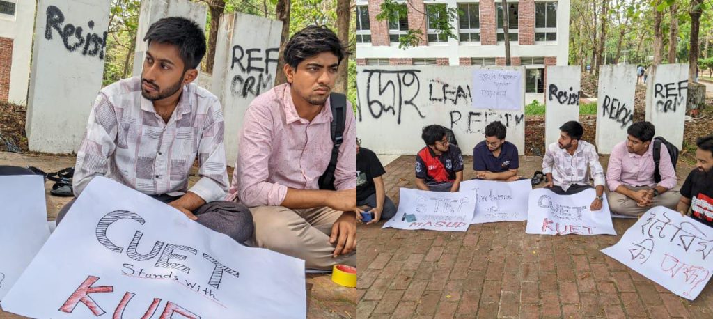 উল্লেখ্য, উপস্থিত শিক্ষার্থীরা কুয়েটে সাধারণ শিক্ষার্থীদের ওপর হামলার ঘটনায় পরোক্ষ মদদদাতা হিসেবে কুয়েট উপাচার্য কে দায়ী করেন। তারা আরো বলেন, স্থানীয় সন্ত্রাসীর হামলাযর শিকার হওয়া কুয়েট শিক্ষার্থীদেরকে বহিষ্কারাদেশ প্রদান করার ঘটনা ফ্যাসিবাদী আচরণ স্বরূপ। তারা কুয়েট উপাচার্য কর্তৃক এমন ফ্যাসিবাদী আচরণের নিন্দা জানান।